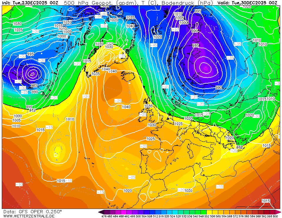 Het hoog staat veel sneller begin volgende week met een overgang naar vuil winterweer. Daarna klapt de rug om en bereikt een portie zeer koude lucht ons uit het noordoosten met kans op sneeuw.