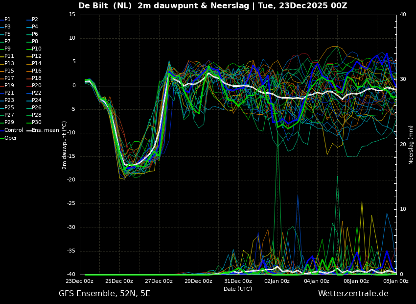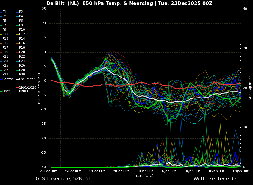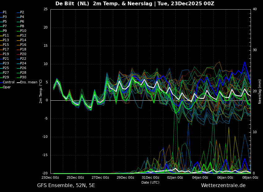 In het nieuwe jaar is de spreiding enorm en lopen uiteen van zo'n -6 aan de onderkant tot zo'n 11 graden aan de bovenkant.