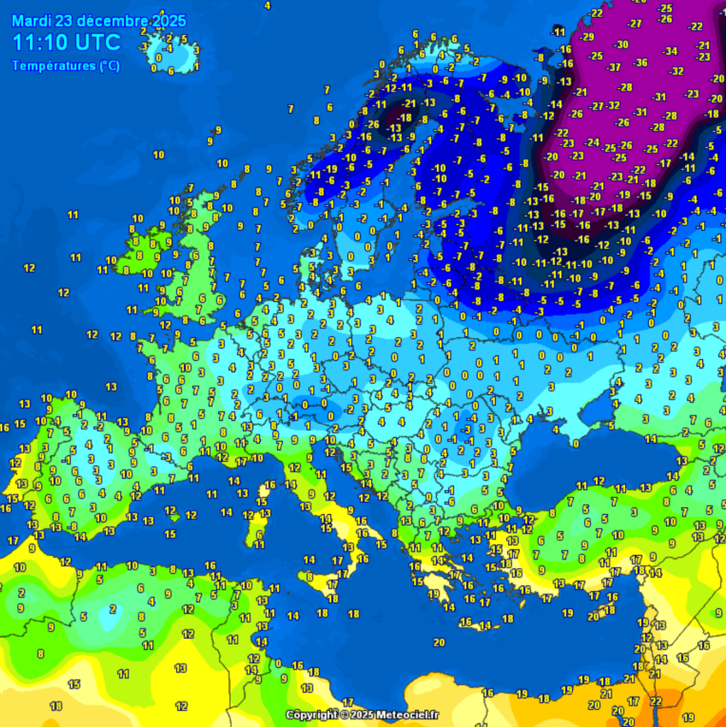 Wat ook meteen opvalt is de Noordkaap, het wordt daar volgepompt met zachtere lucht en bij Kerst volgt vrijwel heel de rest van Scandinavië (en IJsland).