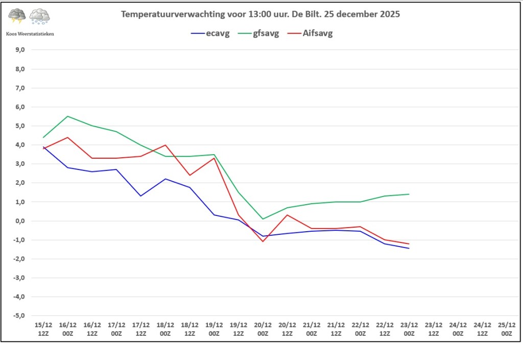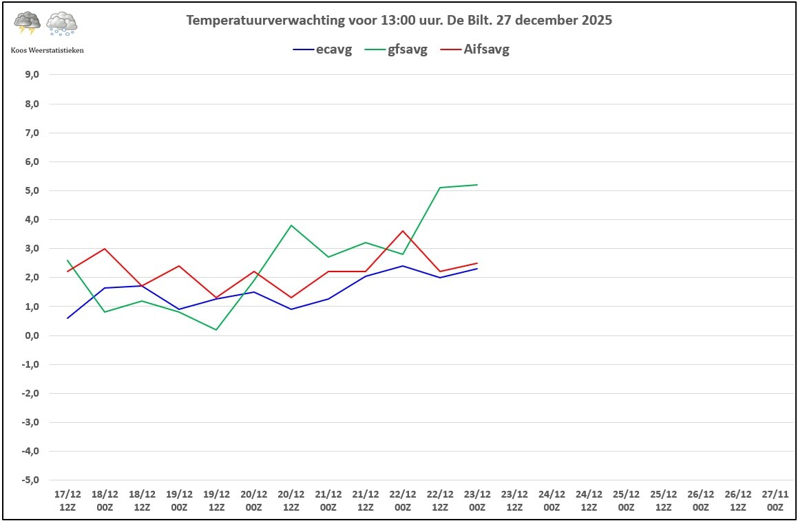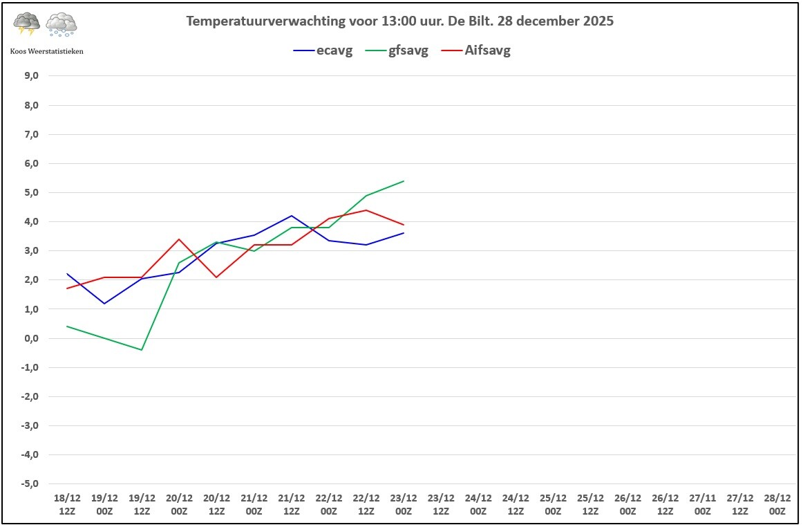 Goed te zien is hoe de verwachtingen voor 27/28/29 en 30 december langzaam "zachter" zijn geworden.