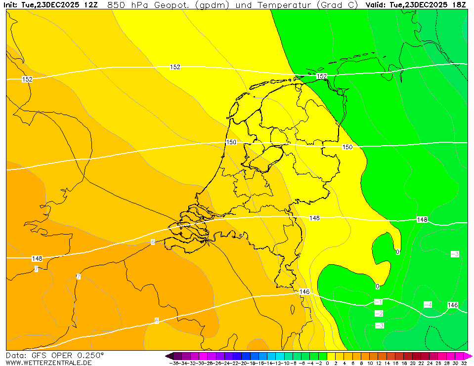 Klopt hoor. De “kou” moet van ver komen en ook op 850 hPa zitten nog vrij hoge waarden. Bij een klassieke inversie maken die hogere waarden minder uit, maar in dit geval mengen ze wel degelijk met de lucht eronder. Daardoor koelt nu niet goed af, zeker in combinatie met veel bewolking en het ontbreken van echte koude lucht ten oosten van ons.