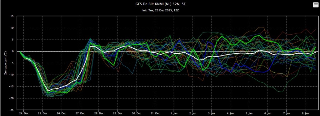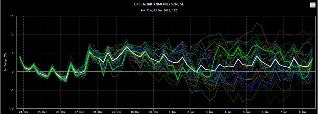 Samengevat geen zachte pluim, maar meestentijds een temperatuur rond of iets onder het langjarig gemiddelde met de koudste periode op de beide kerstdagen.