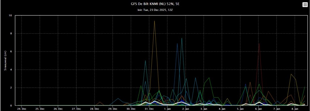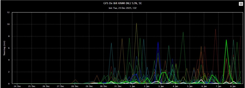 Rond nieuwjaar zijn er wat neerslagsignalen. Hier zou ook wat winterse neerslag tussen kunnen zitten.