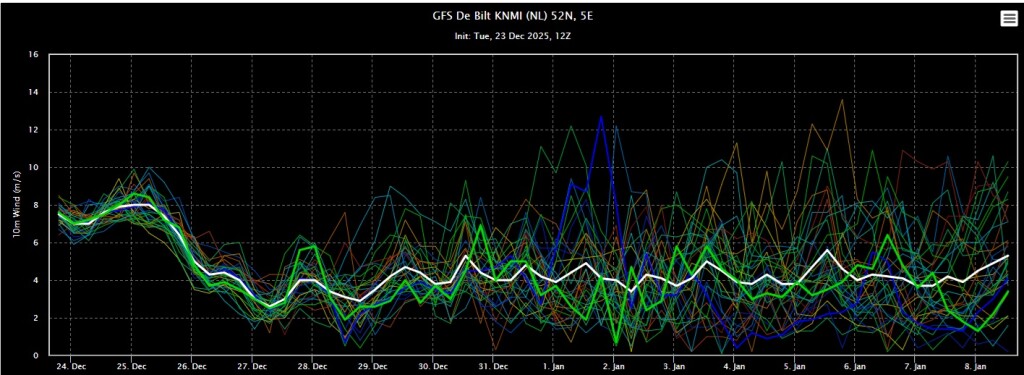 Tot en met tweede kerst blijft de wind behoorlijk aanwezig. Daarna neemt de wind af.