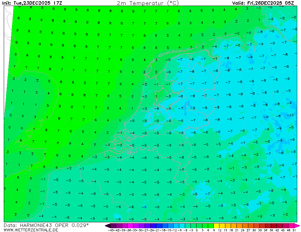 De 16 UTC run van HARMONIE is vrij koud voor donderdagnacht.