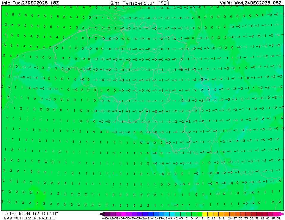 Volgens oa ICON-D2 tegen 9u zeer nipte vorst hier en anders is het sowieso de nacht daarop.