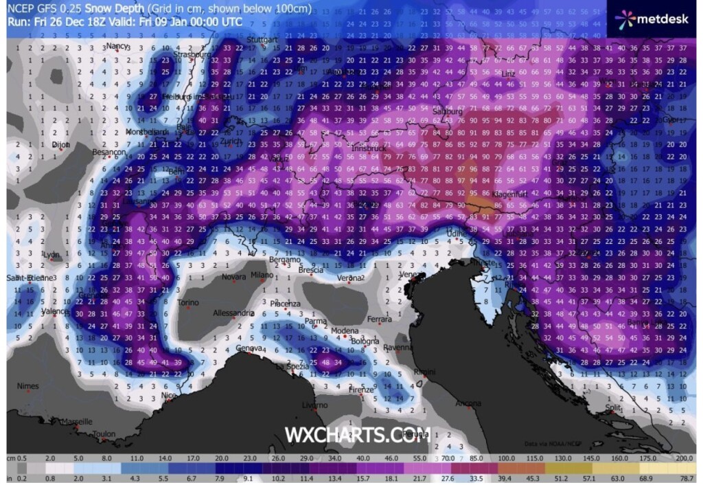 De noordkant van de Alpen heeft een sneeuwdump nodig