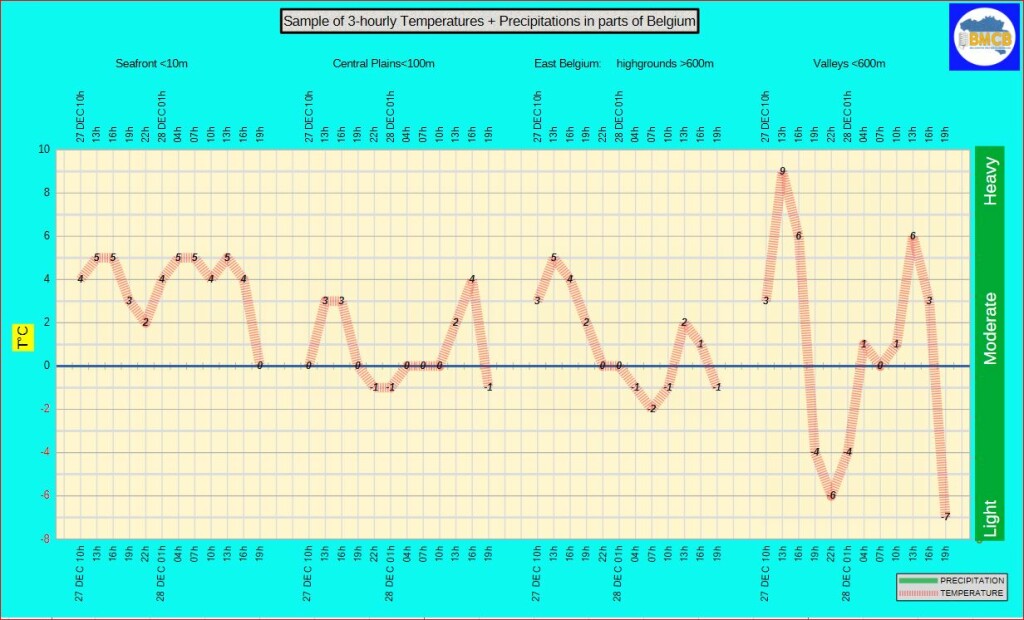 In de voormiddag zijn er opklaringen in de Vlaamse regio's en ten oosten van de Maas, terwijl elders nog veel bewolking en plaatselijk mist aanwezig blijft. De noordoostenwind kan tijdelijk aantrekken op de Ardense hoogten.