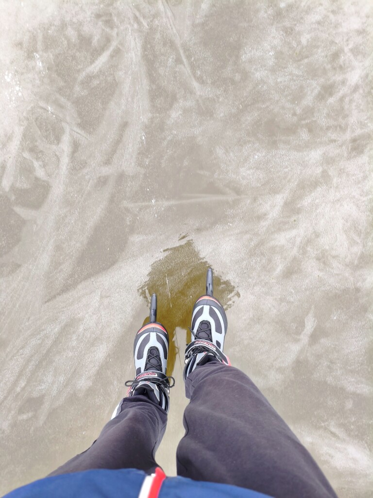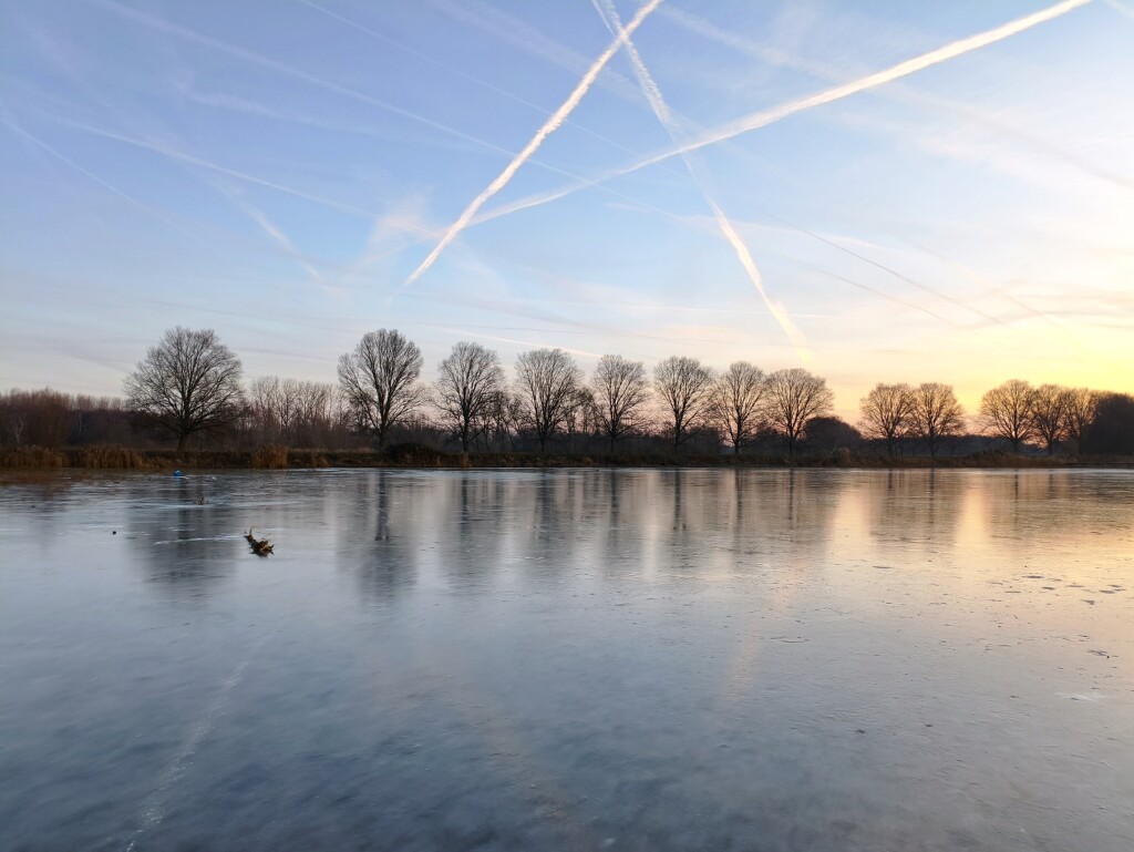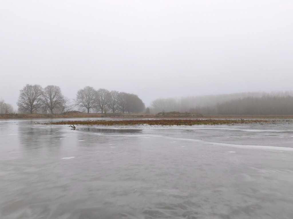 Geweldige (en koude) zonsopkomst, gelijk het ijs op. Meeste plekken een prima dikte van (ik schat) ca. 5 centimeter, wel een enkel windwak, maar daar viel prima omheen te schaatsen. Halverwege de ochtend kwam plots lage bewolking en mist opzetten, het weerbeeld veranderde compleet binnen vijf minuten. Uiteindelijk door geschaatst tot een uur of 11, want met positieve dauwpunten kwam er al snel meer water op het ijs. Op zichzelf niet zo erg, maar het identificeren van zwakke en open plekken in het ijs werd daarmee een stuk moeilijker. Maar al met al toch een groot deel van de ochtend kunnen genieten van het natuurijs!