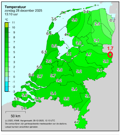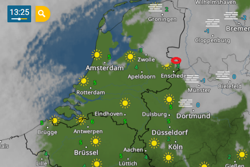 Het was eerst zonnig vandaag, maar nu trekt de mist langzaam binnen. Het was 2,5 graden, en is nu in een half uur gedaald naar 1,7 graden momenteel. En op Twenthe is het zonnig en 5 graden momenteel.