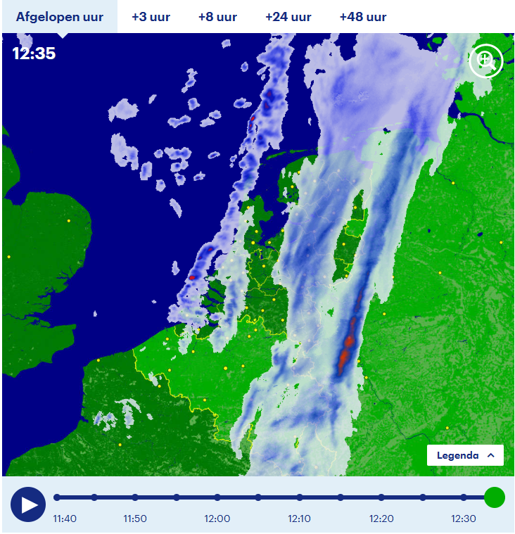 De buien achter het front lossen ook op