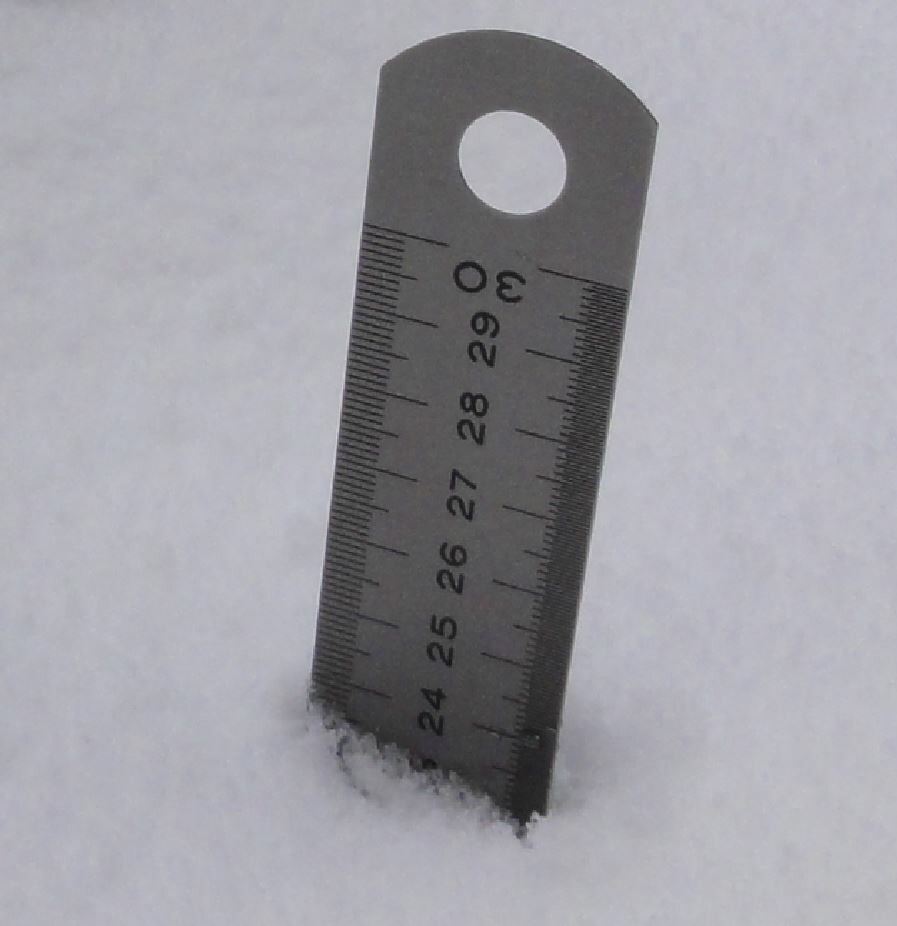 sneeuwdraad 14.00 uur. Dit is de sneeuwdikte in mijn tuin!
