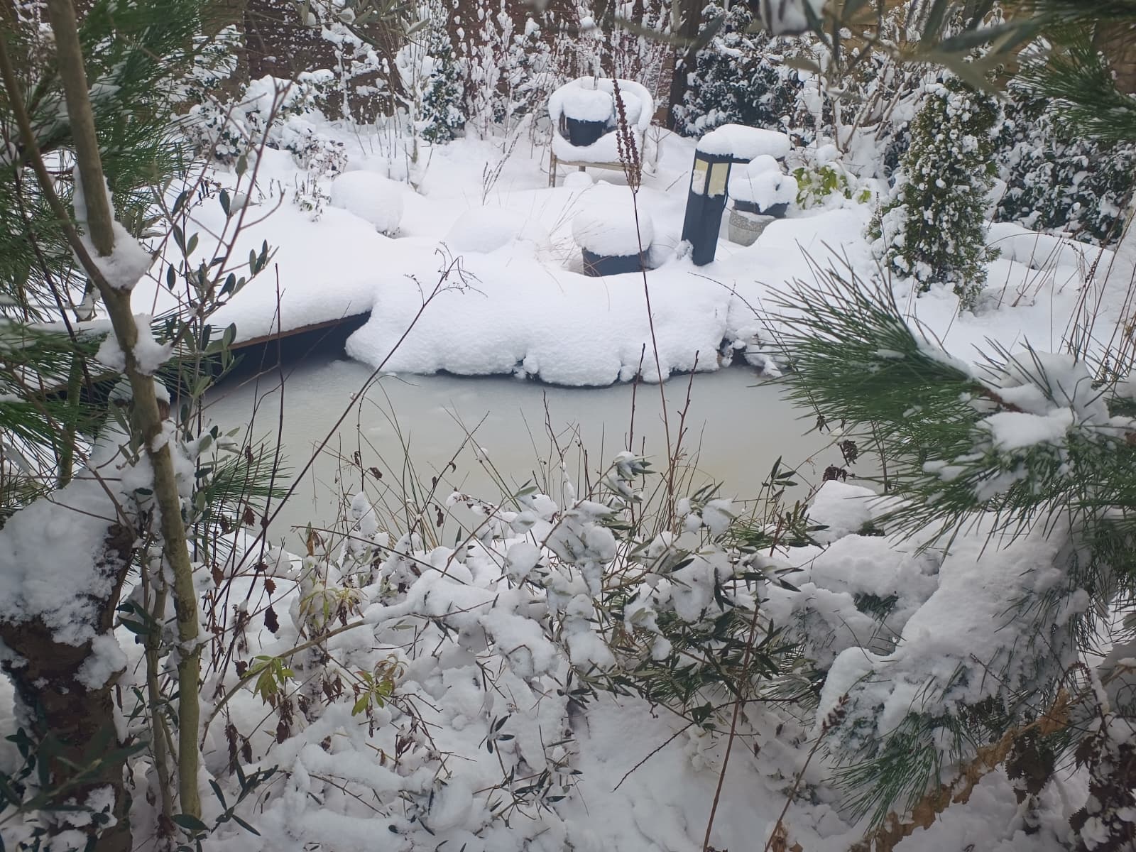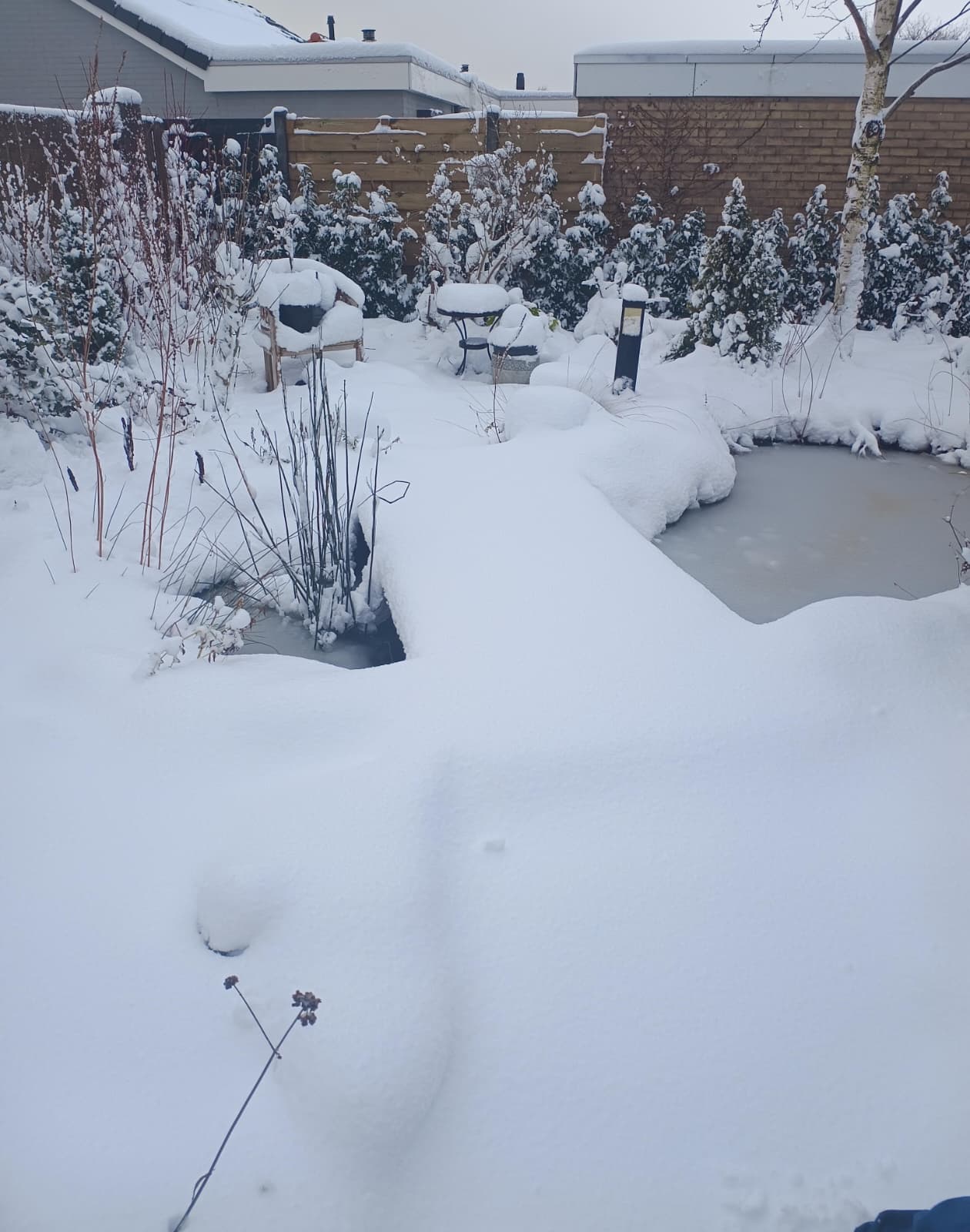 Het blijft maar doorgaan. Mooie afwisseling van gele en staalblauwe luchten. Op de tuintafel ligt 26 cm. Hieronder nog wat plaatjes uit de tuin.
