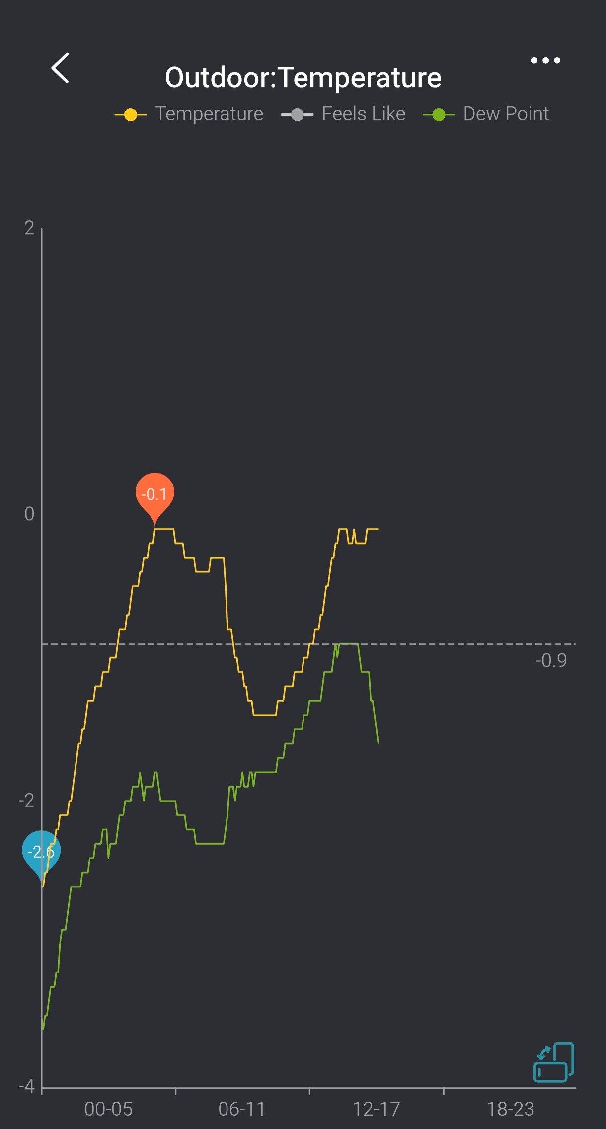 Hier + 5,0 graden ondertussen, temperatuur stijgt