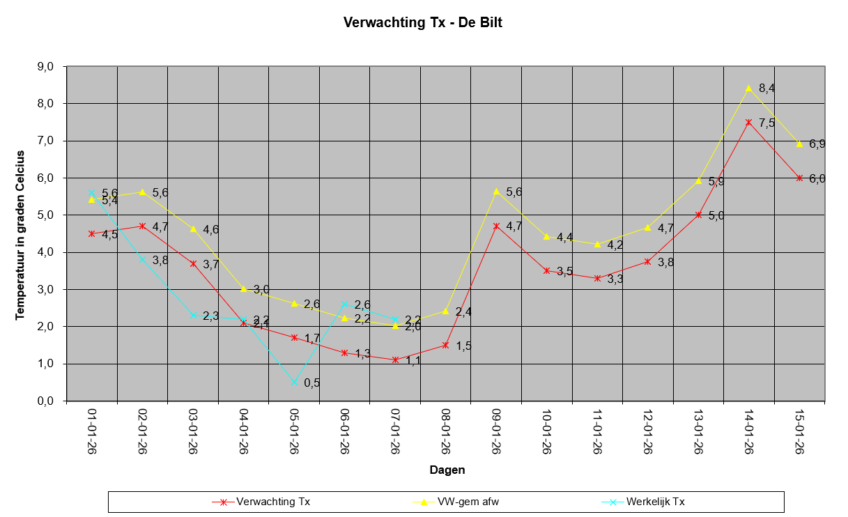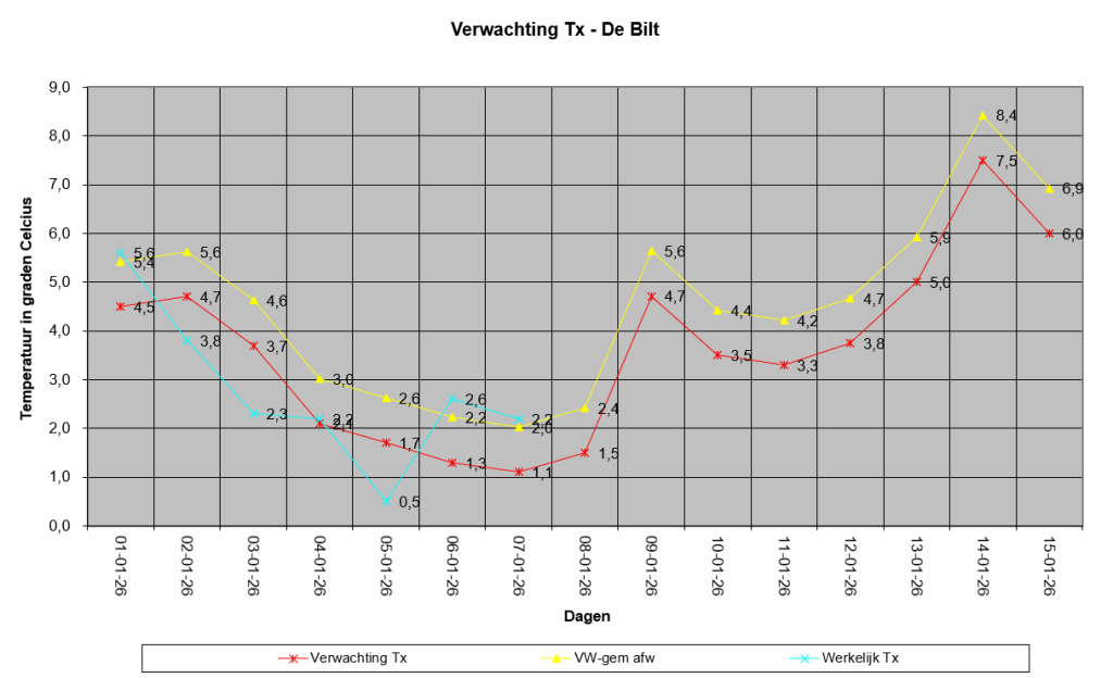 Uit onderstaand overzicht mag duidelijk zijn dat de gezamenlijke GFS Opers ook gisteren 1,0°C te laag zaten.