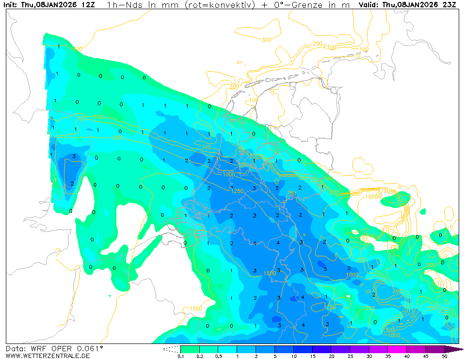 Daarna overgaand in regen als de echt zachte lucht doorkomt. Je ziet dit mooi op de 925 hPa kaarten. Daarna occludeert het front en gaat de regen weer over in sneeuw. Het eerst in het noorden, waar bijna alles direct als sneeuw valt (op wat kans op ijzel in laatste stuk na).