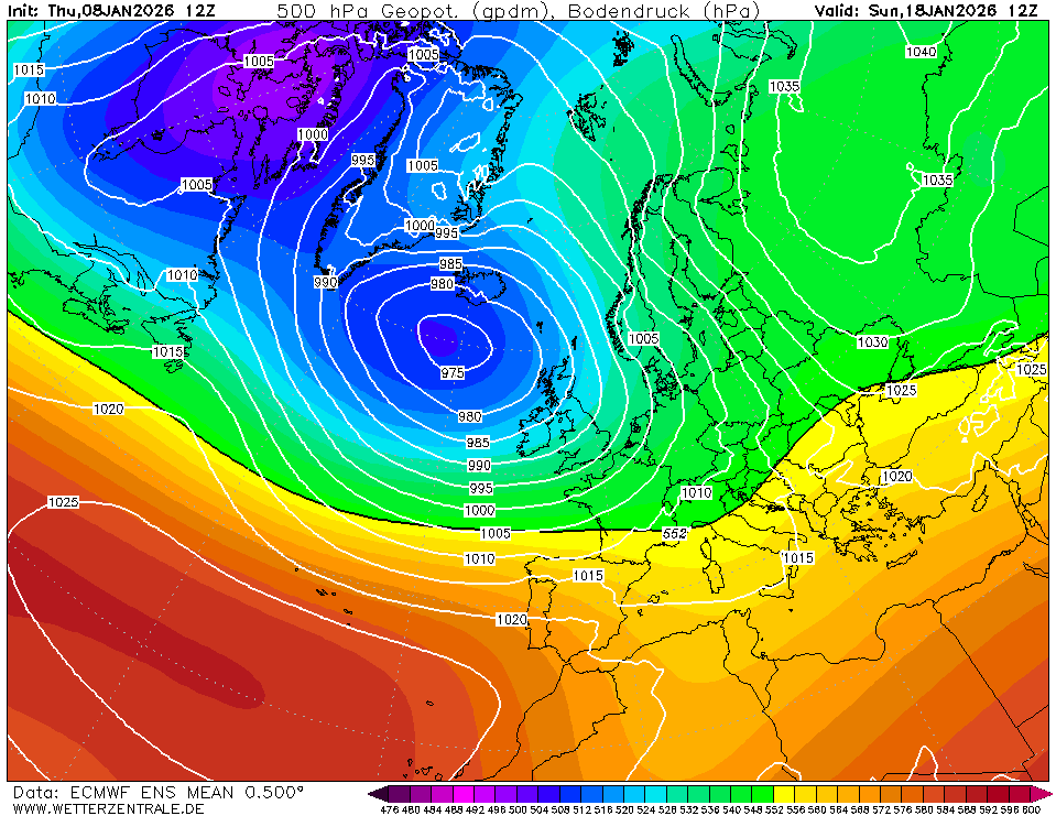 Ik geef het voorbeeld van het gemiddelde van de 12Z-run. Je zou het geblokkeerd kunnen noemen, maar winterweer levert zo een blokkade niet op natuurlijk