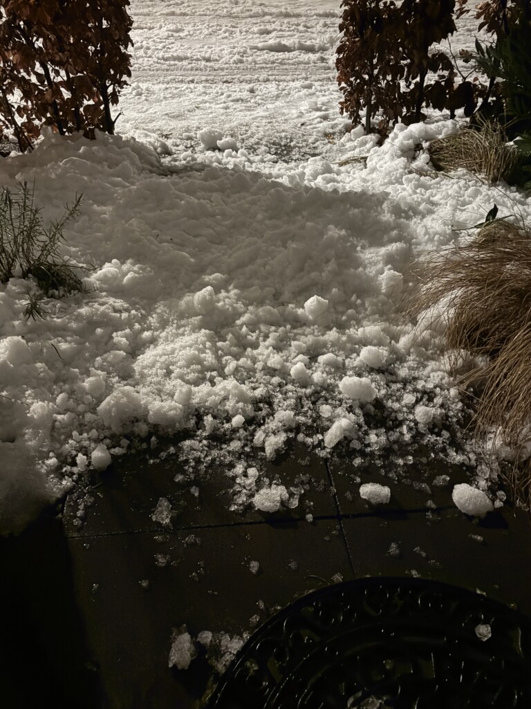 het levert wel meteen weer een sneeuwdek op, op het schoongeveegde pad