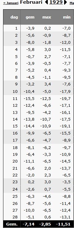 Een gemiddelde minimumtemperatuur van maar liefst -11,5 °C. En een Tg van ruim -7 °C over de gehele maand.