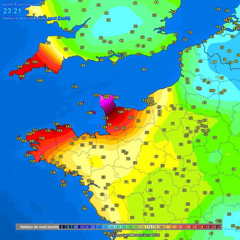 Barfleur - Gatteville-le-Phare windstoot van 196 km/h om 23:00