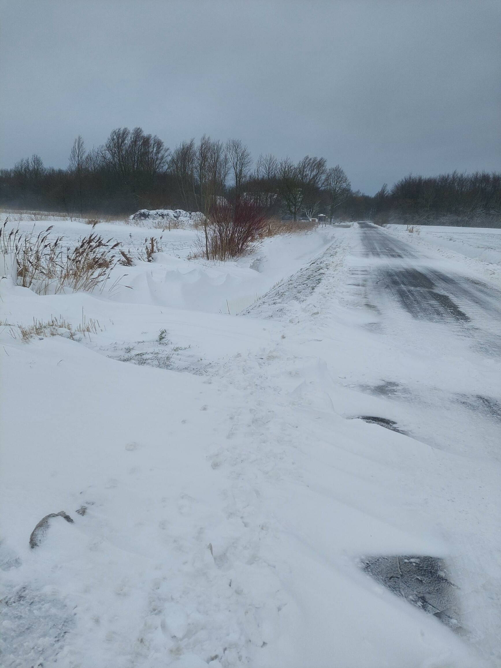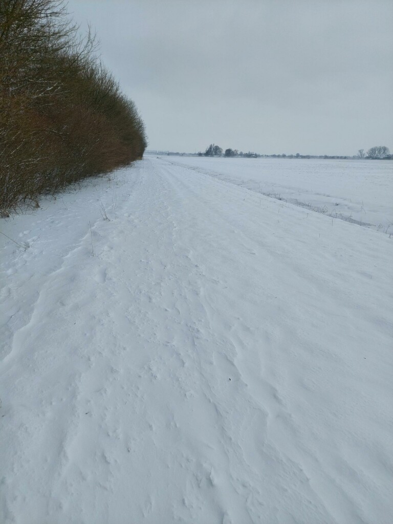 Die laatste foto is de bosrand van Kardinge. Daar geen wind en dus een rustig sneeuwdek van 15cm ongeveer. Het was trouwens spekglad. Een ijsbaan.