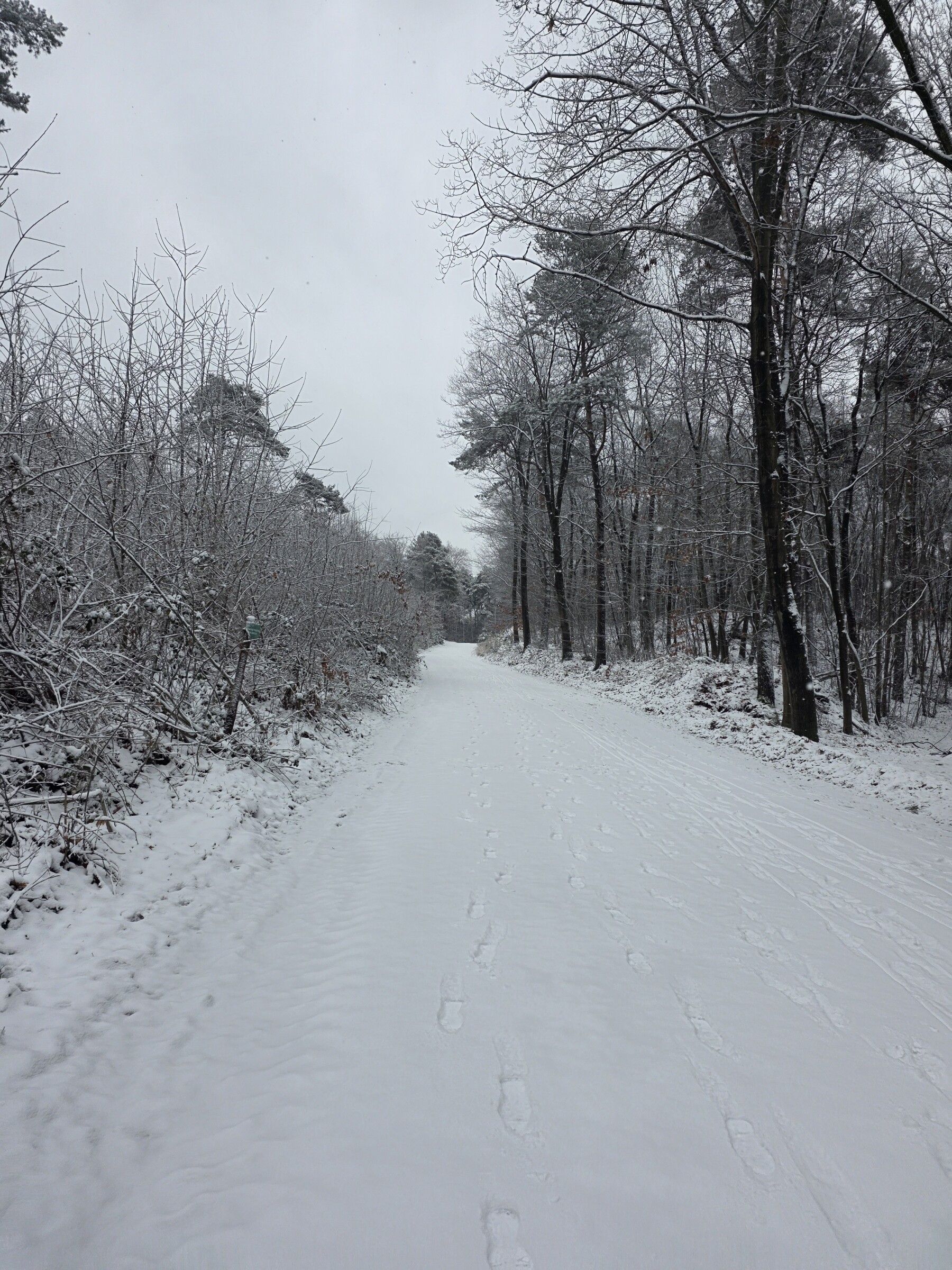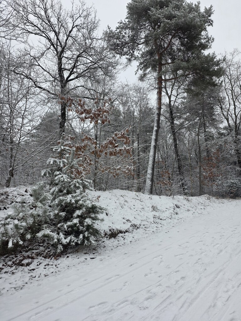 Mooi is het zo, alles vol sneeuw, vlokjes en een donkere lucht.