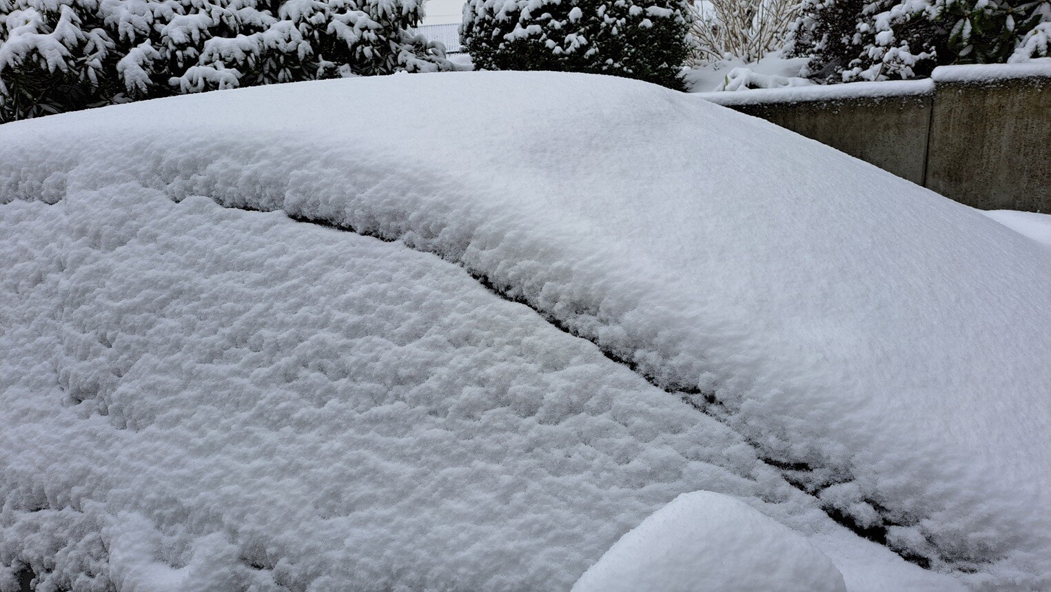 De auto vrijmaken was een hele klus. Een ijslaag en daar 5 cm sneeuw bovenop.Afwachten hoe koud het komende nacht wordt, zal afhangen van bewolking en hoe droog de lucht is.