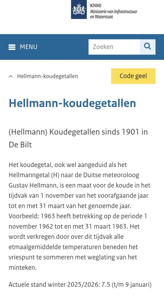 Maar kijk ik baar de hellmann getal voor de Bilt dan valt deze winter nog in de categorie buitengewoon zacht.