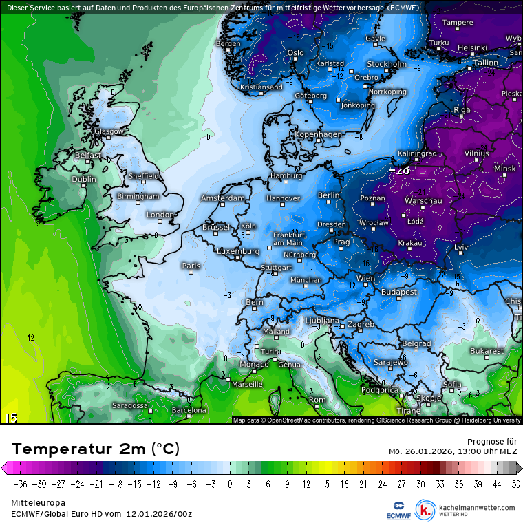 Op de laatste kaarten komt de strenge vorst niet echt meer dichterbij, al lijkt dat misschien zo als je één kaart ziet.