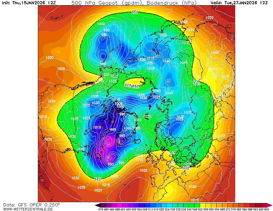 GFS 12z oper 13 januari 2026, Tx / Tn overzicht