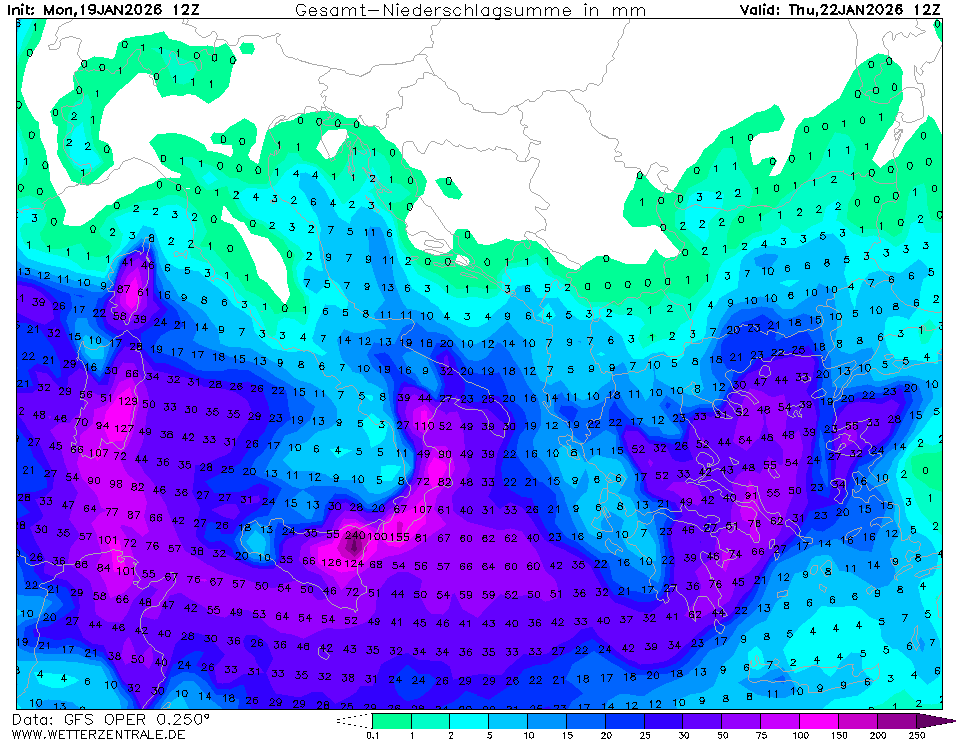 Deze gebieden krijgen komende dagen reeds e.e.a. aan neerslag. Met de komst op 144u van een nieuw lagedrukgebied, zal er nog meer regen vallen.