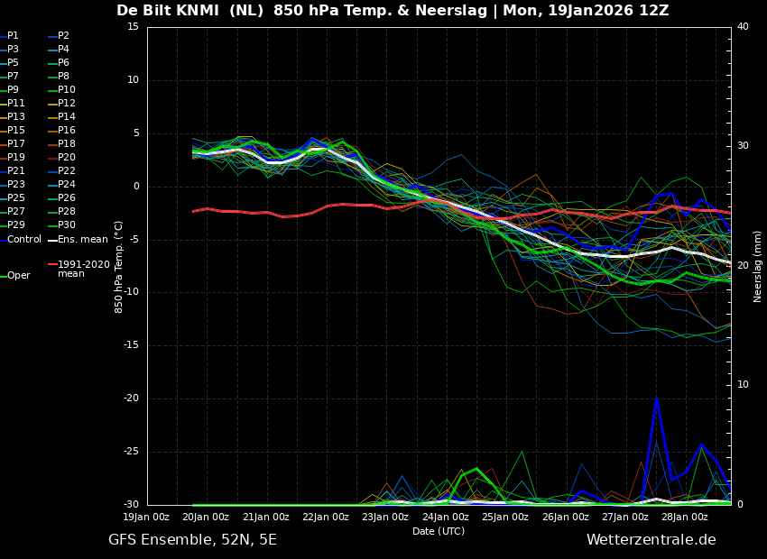 Voorlopig ensemble DB 1-2 graden kouder op LT
