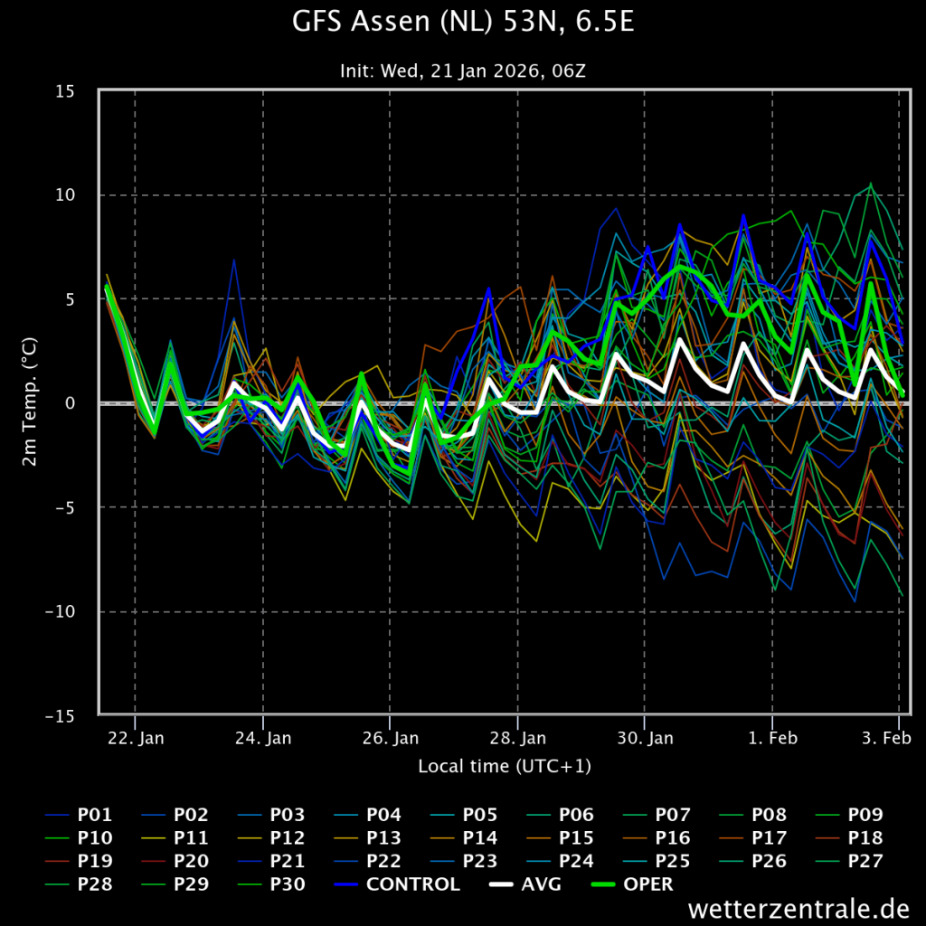 GFS ENS 2 graden afgekoeld , zeker voor NO op de LT