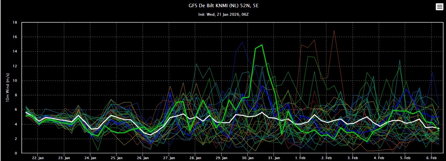 De wind zal vanaf de 27e wat meer in kracht toenemen als gevolg van passerende storingen.