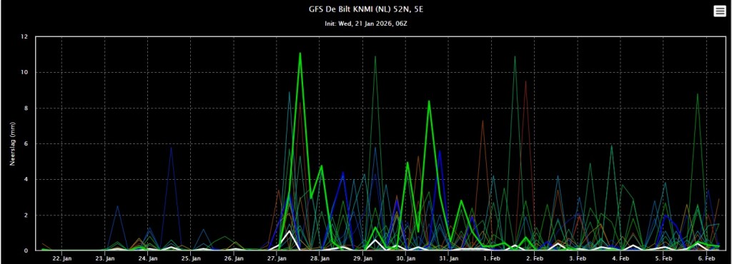 Vooral vanaf de 27e neemt de onstabiliteit toe met meer neerslagsignalen.