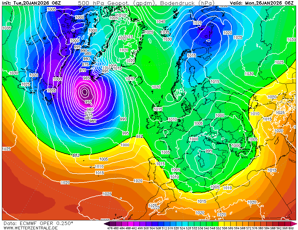 Dat wil zeggen dat de depressie verder richting het continent beweegt. Dat maakt het waarschijnlijk ook zo lastig voor de modellen, want ga je hier een tussenoplossing opzoeken dan wordt het erg precies voor de Benelux waar de wintergrens zich zal bevinden.