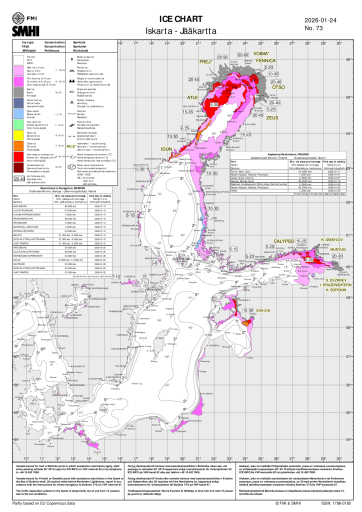 Op dit moment ziet SMHI rondom de Oostzee overal ijsvorming, ook langs de zuidkust. De temperaturen van de Oostzee zijn van belang bij een eventuele noordoostelijke stroming.