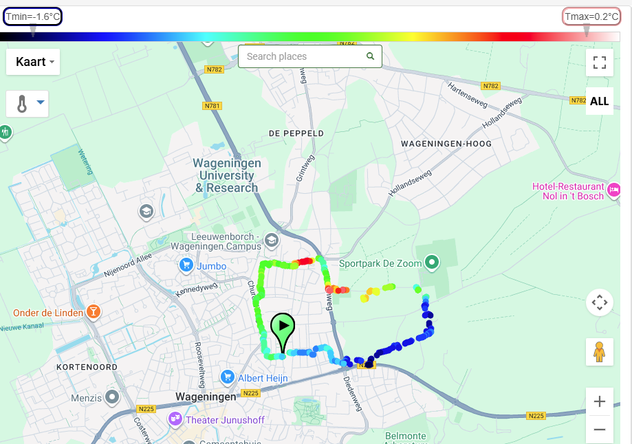 Nu thuis een graad of -1,5, eerder vanavond tijdens de wandeling de laagste temperaturen net buiten de bebouwde kom aan de oostkant van het dorp. In het dorp zelf lokaal zelfs net boven het vriespunt.