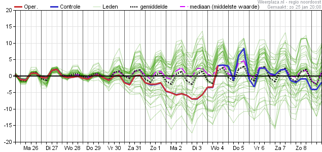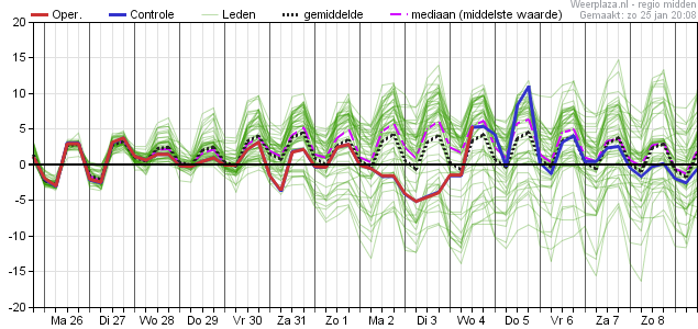 Waar pluim midden het zachte weertype laat overheersen, is pluim NO een ware thriller. Zo ziet dus een bifurcatie eruit. De kou is en blijft heel dichtbij.