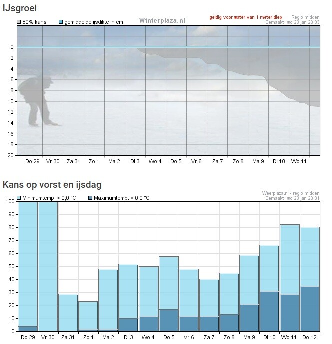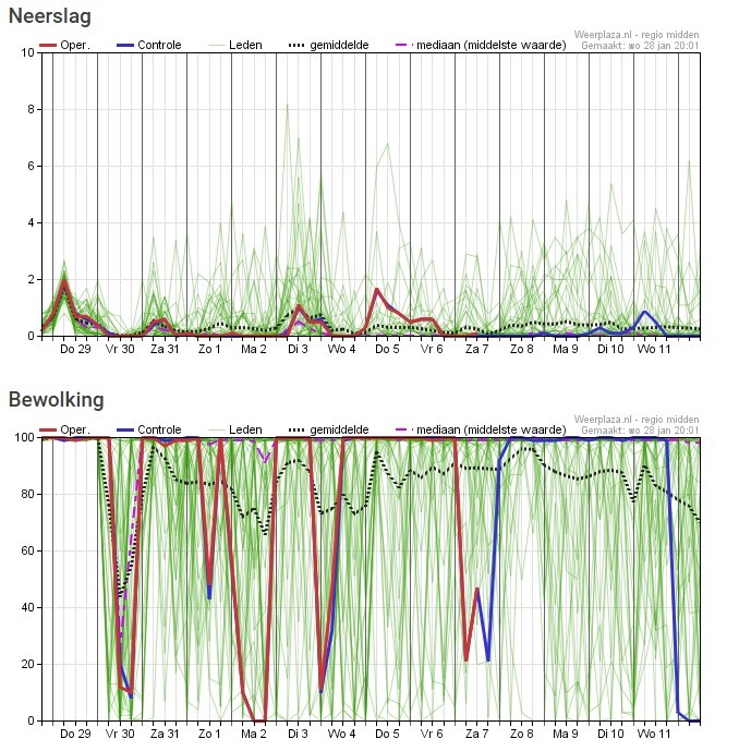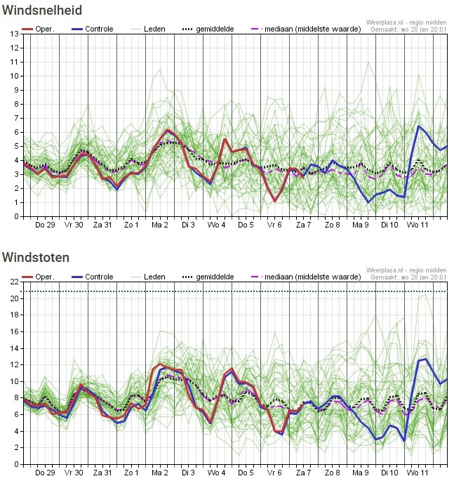 In de pluim zien we veel spreiding. Nog steeds een teken dat er nog veel mogelijk is. Op de echt lange termijn zien we ook weer meer kansen op vorstdagen.
