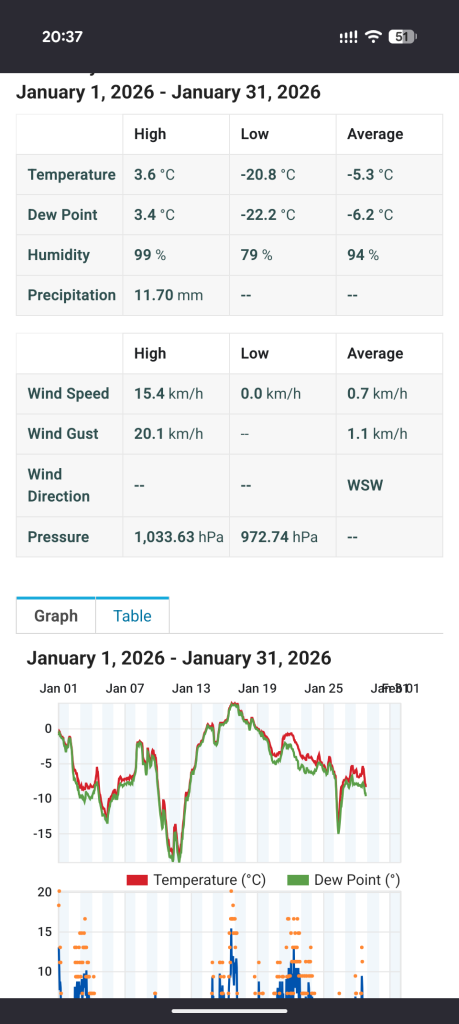 Tact is -8,9..de statistieken van deze maand tot nu toe zijn fantastisch om mee te maken. Geen idee of het een "normale" maand is trouwens, maar ik vind het diepwinters