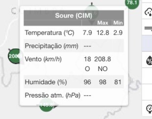 Zoals verwacht hebben veel stations op de IPMA site niks doorgegeven: in veel gevallen door stroomstoring, maar ook omdat enkele stations vernield zijn.