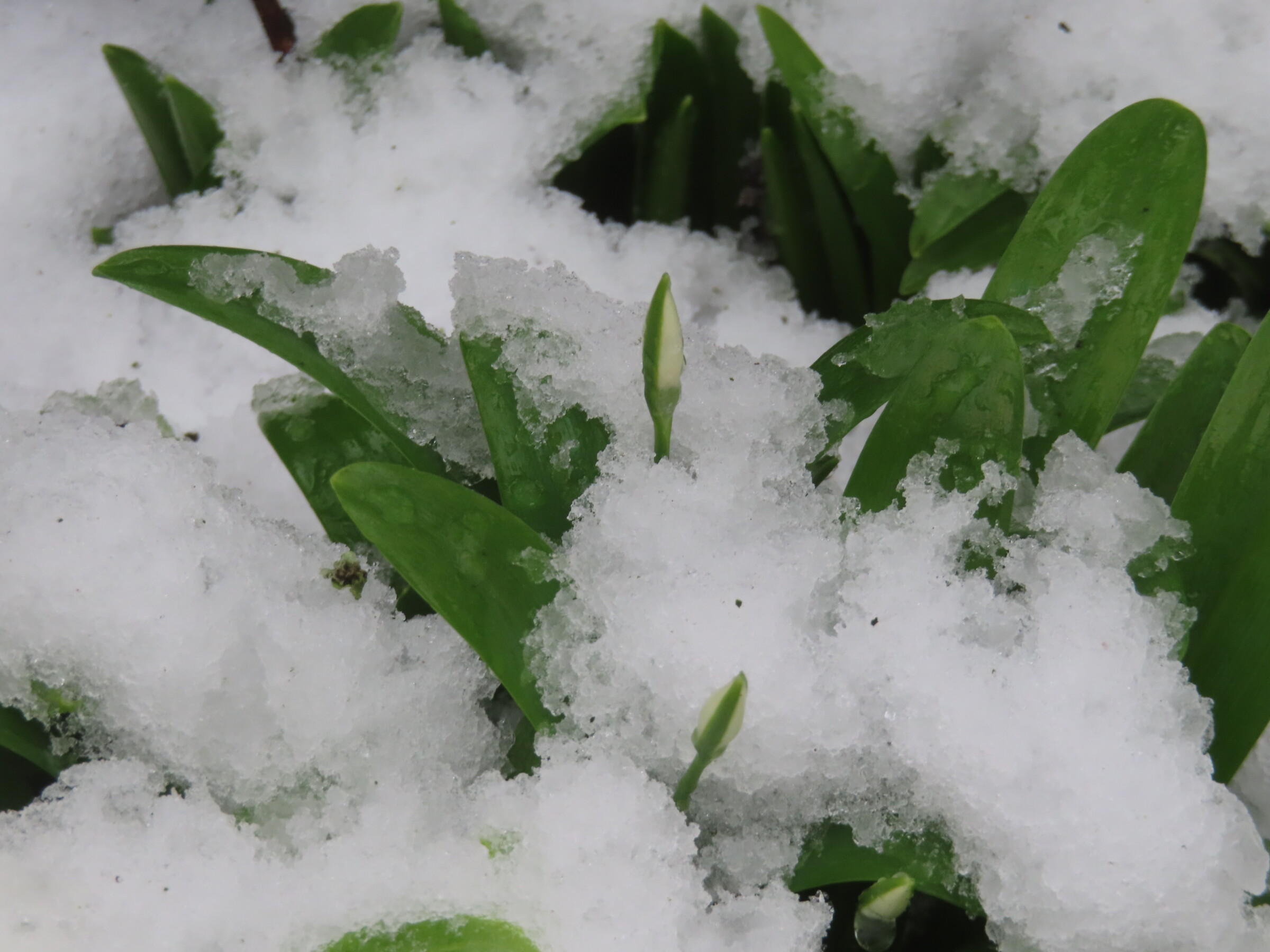 Ook al zouden die Sneeuwklokjes hier willen, ze komen niet door sneeuwlaag heen.