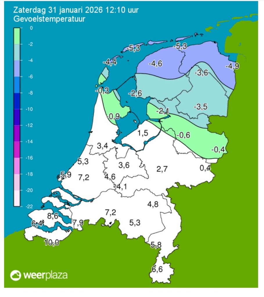 Van een ijzige -5c in het NO, tot 10c in het ZW.
