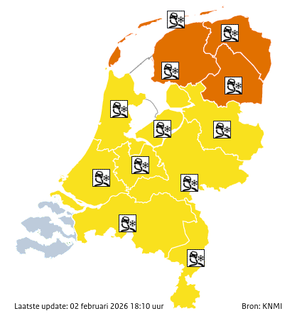 Volgens RTL code oranje van 2200u vandaag tot 1000u morgen