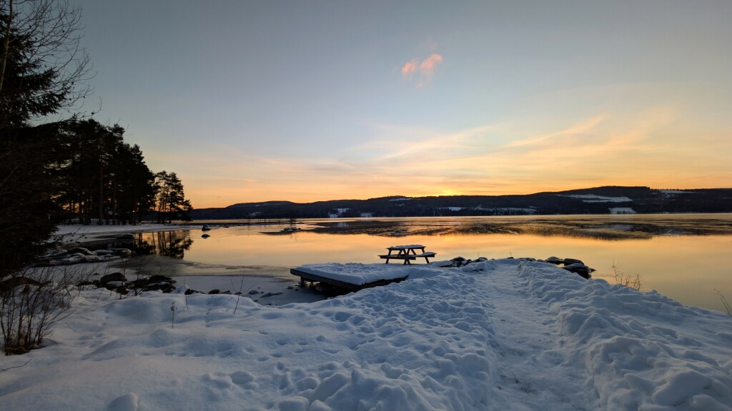 . Zodra het dan windstil is, doet het frykenmeer zijn best om te bevriezen, zoals nu. Ter plekke kon ik het ijs zien groeien, mooi zwart ijs! Het is dan ook al lange tijd koud hier en ook nu gaat het zeer streng vriezen waarschijnlijk.
