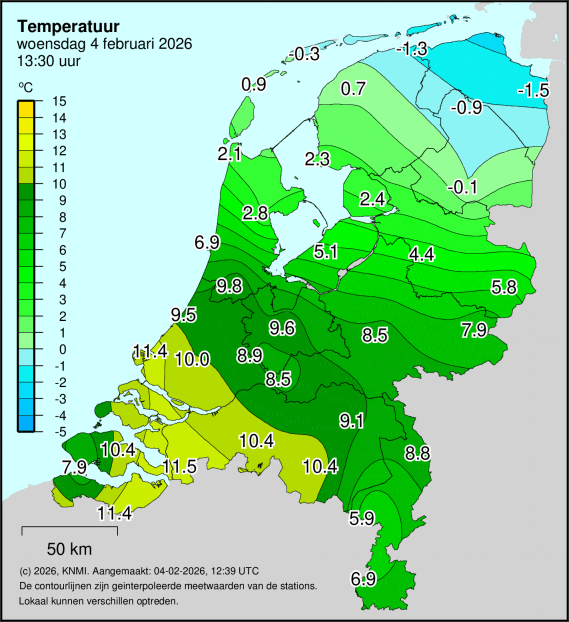 Frisser dan verwacht want het zou daar 11 a 12 kunnen worden, maar het is daar tussen 8 en zelfs 6.
