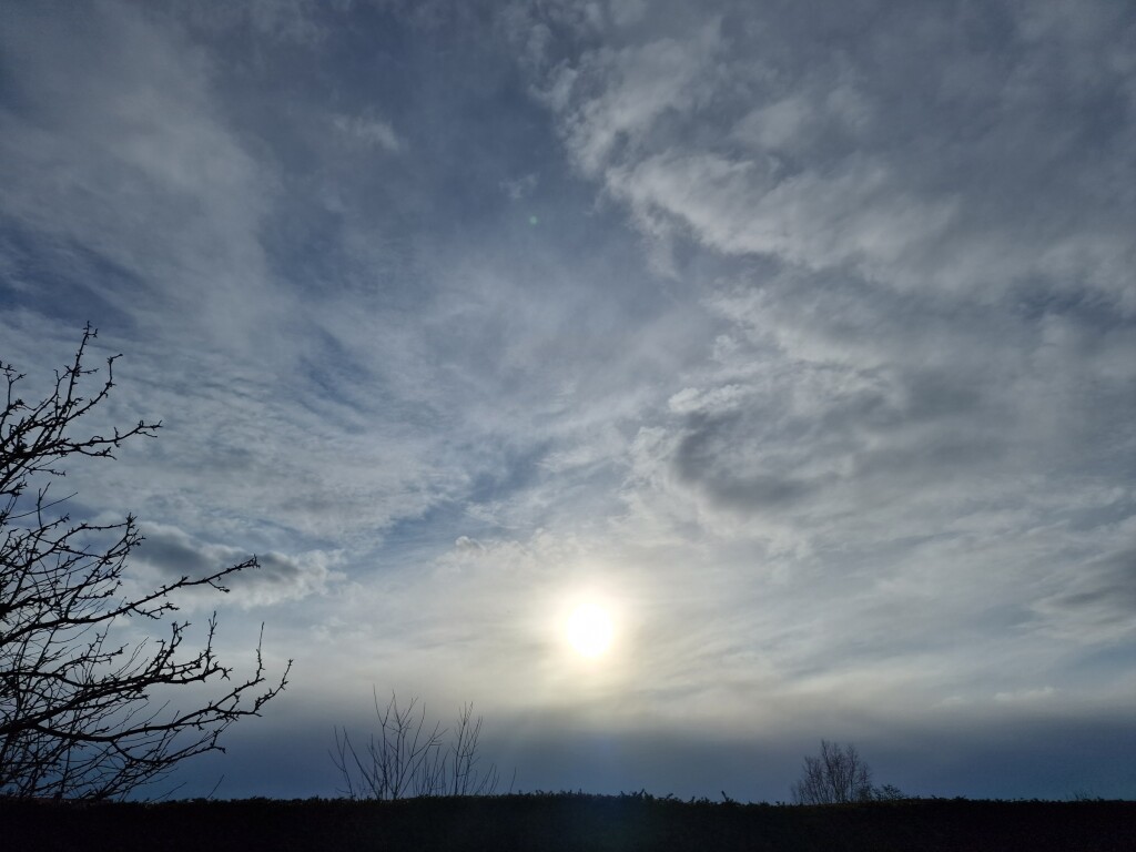In bloot bovenlijf in de tuin gewerkt en dan nog brak het zweet me uit. De typische AC castellanus en floccus wolken in het zuiden gaven echt het gevoel van een 'zwoele' zomerdag en dreigend warmte- onweer. Zelfs de paar verdwaalde regendruppels die we vorige zomer zo dikwijls hadden waren weer op het appel