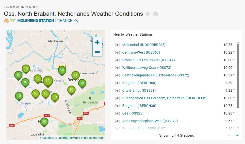 Enkele stations in de directe omgeving hebben zelfs afgerond 11C op de thermometer staan.