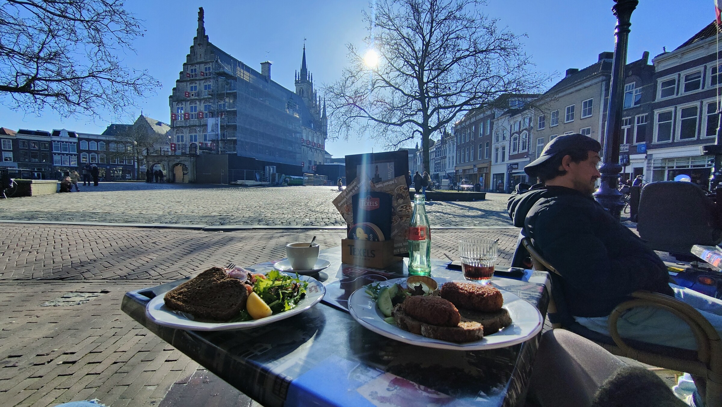In het zonnetje op de markt in Gouda tijdens de lunch.